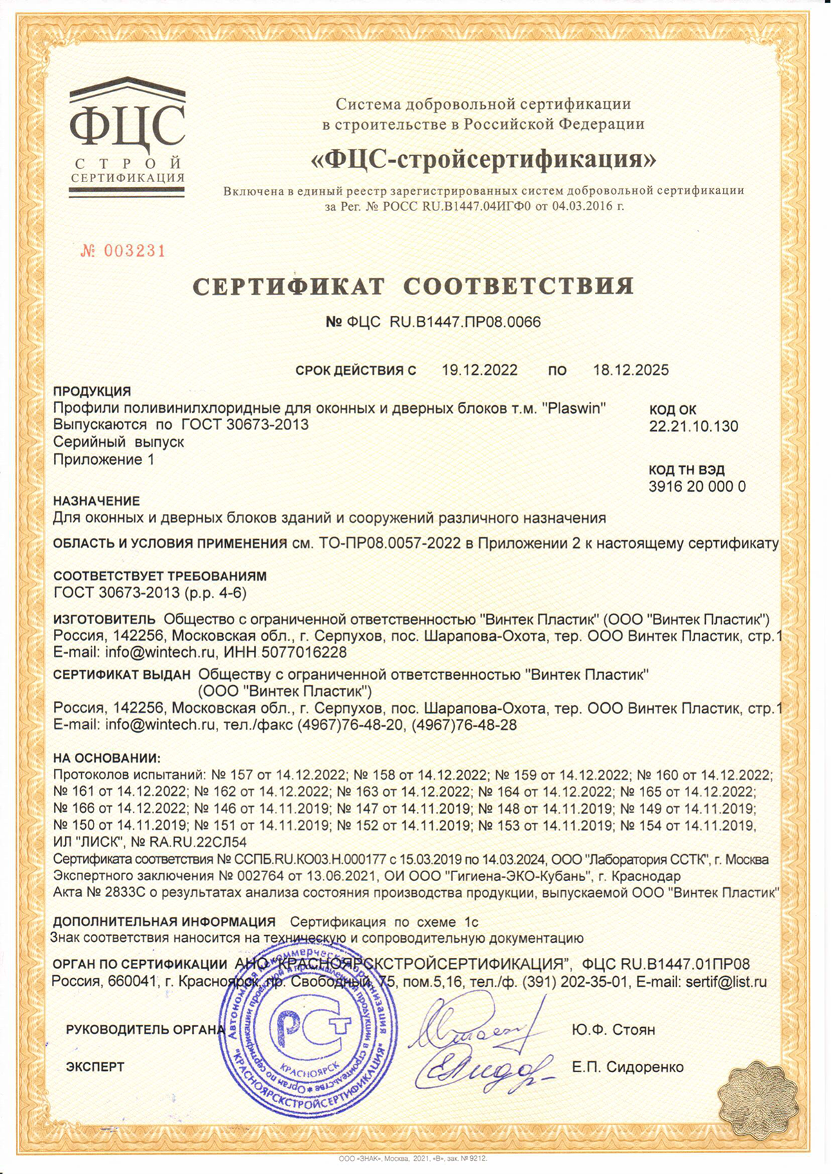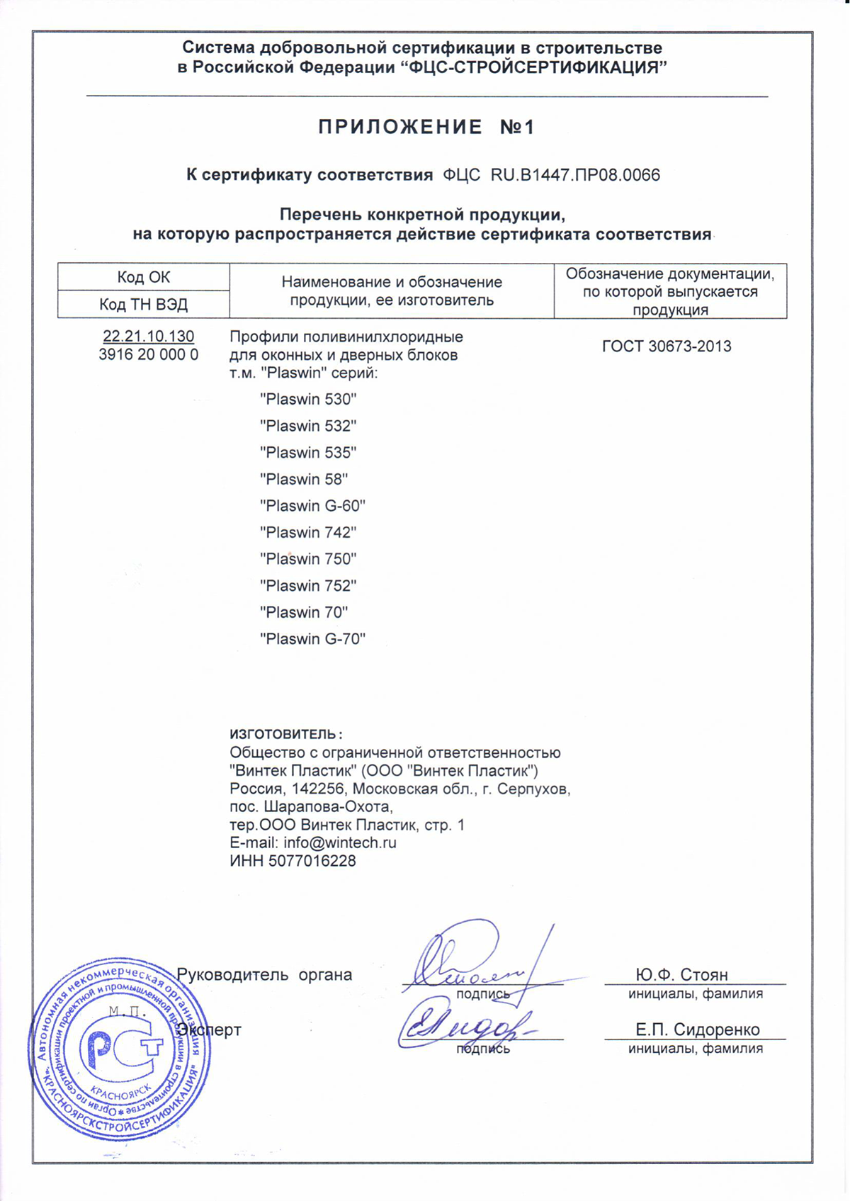 Сертификаты о соответствии PLASWIN