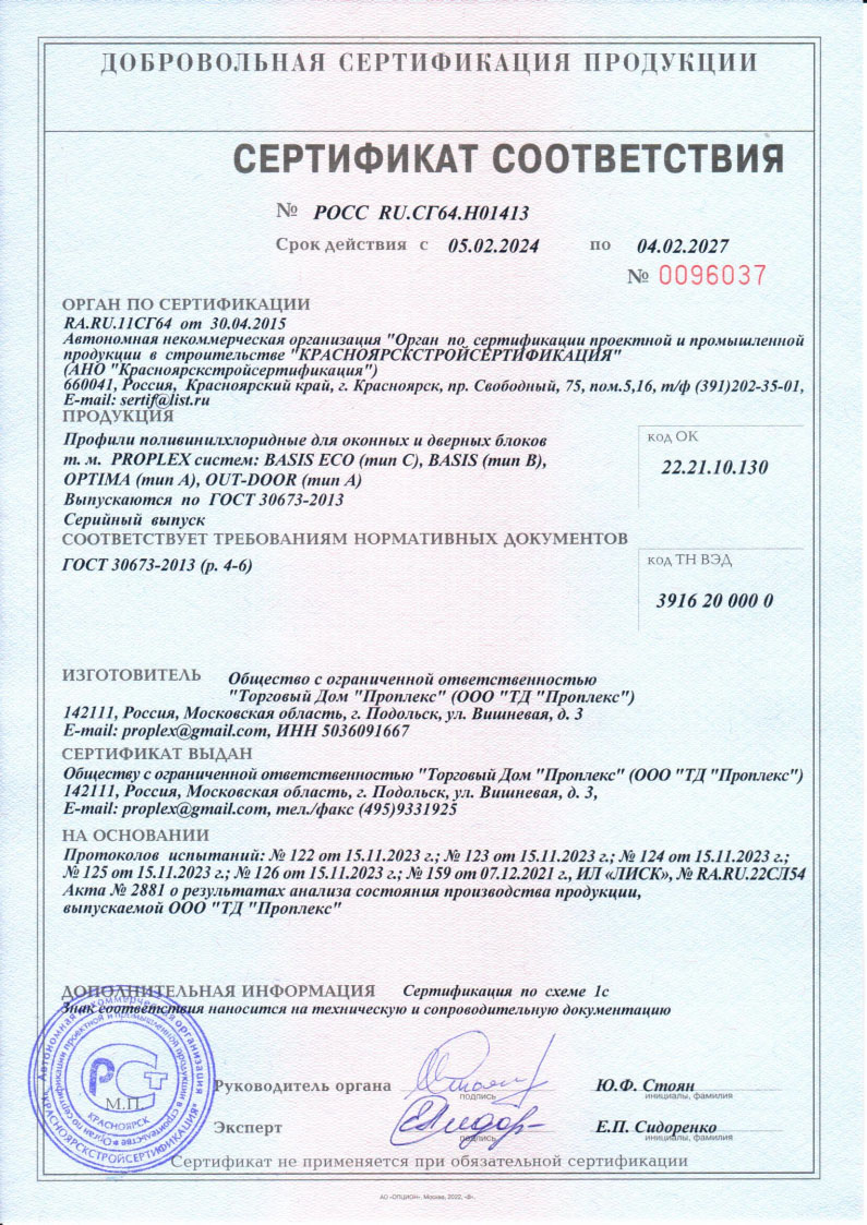 Сертификаты о соответствии PROPLEX
