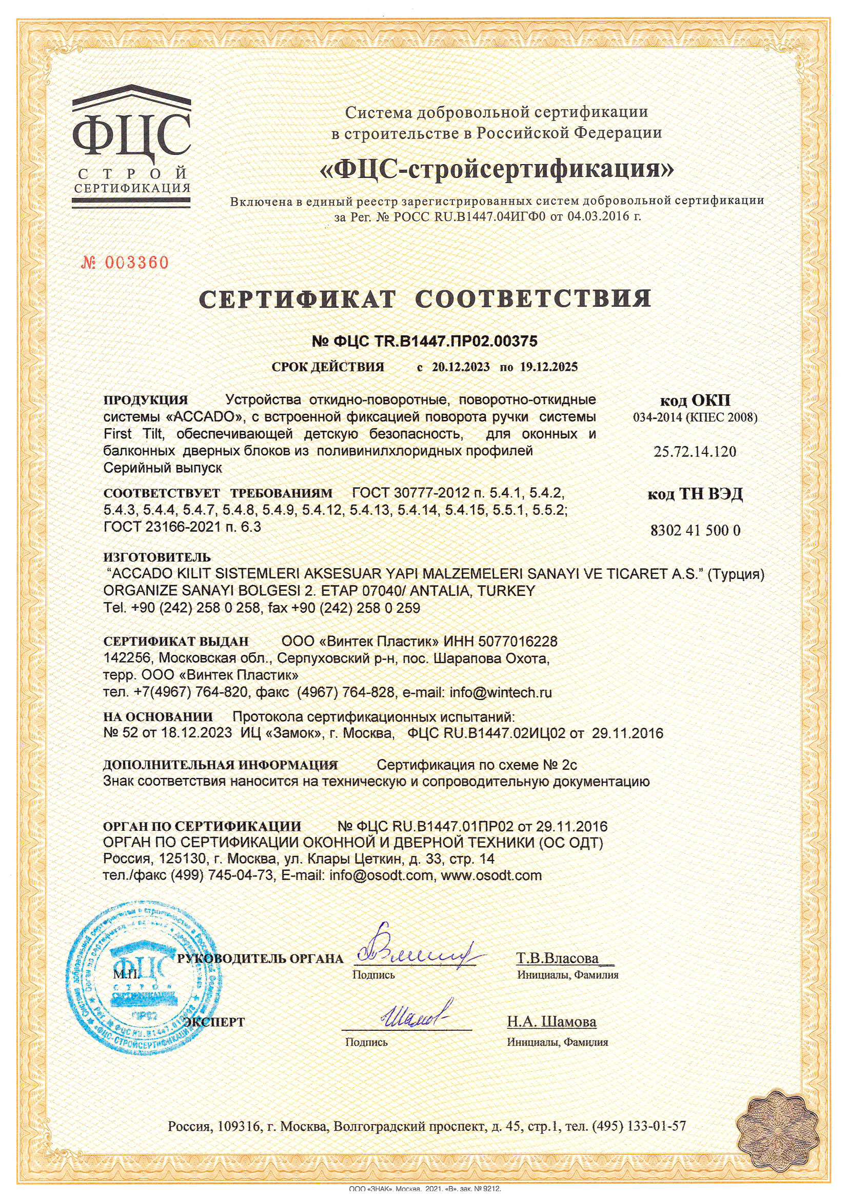 Сертификат о соответствии ACCADO