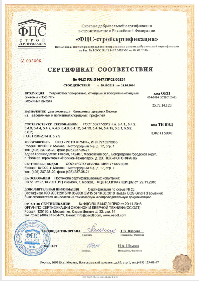 Сертификаты о соответствии ROTO