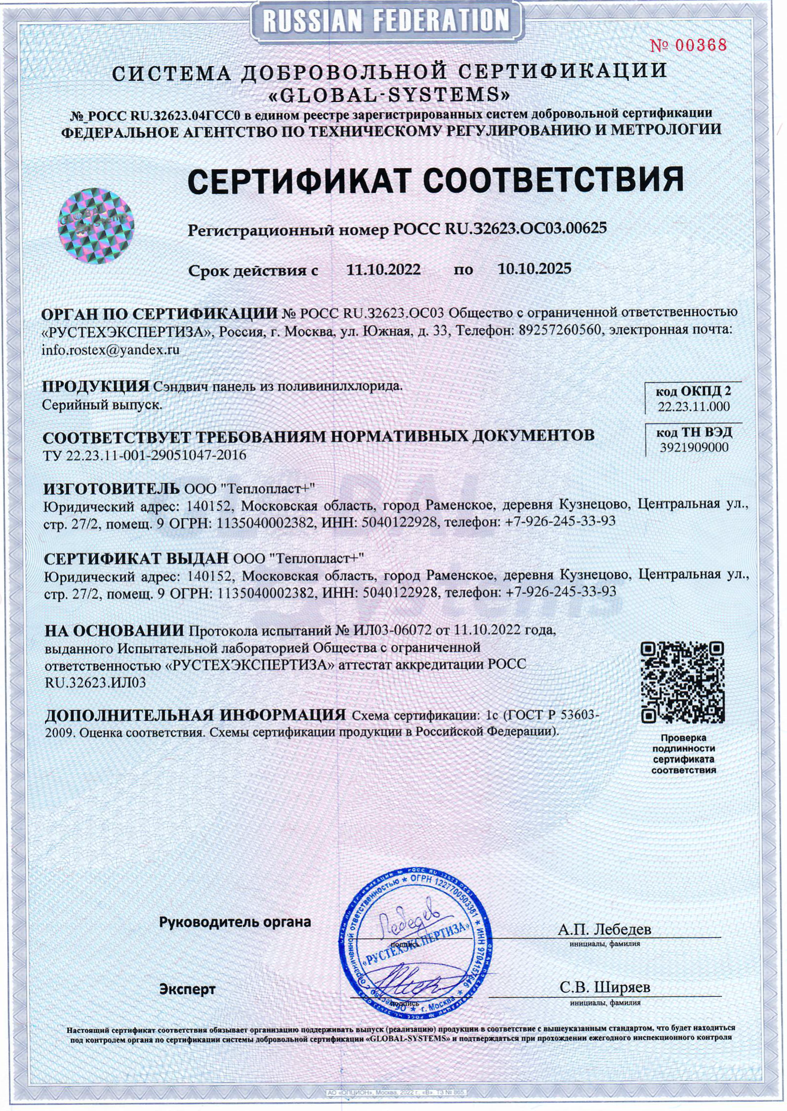 Сертификат о соответствии Теплопласт