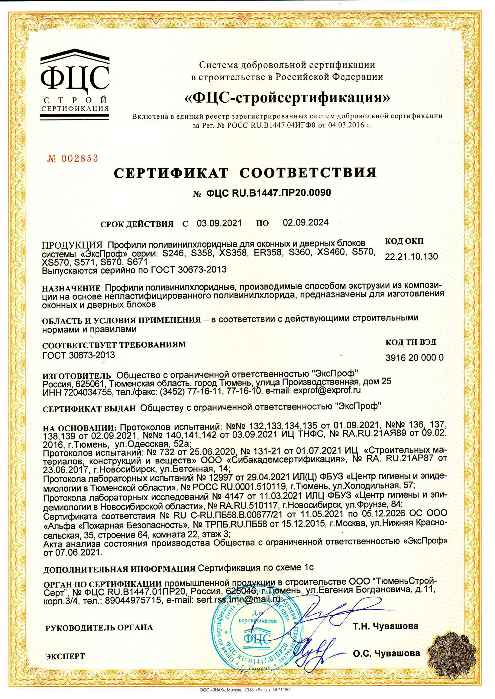 Сертификаты о соответствии EXPROF