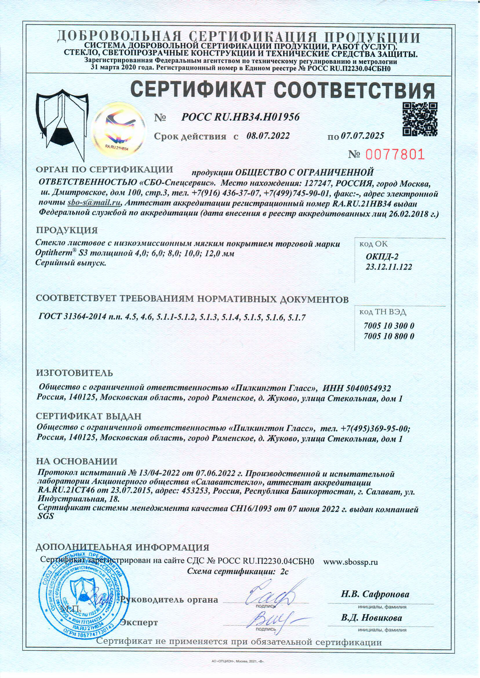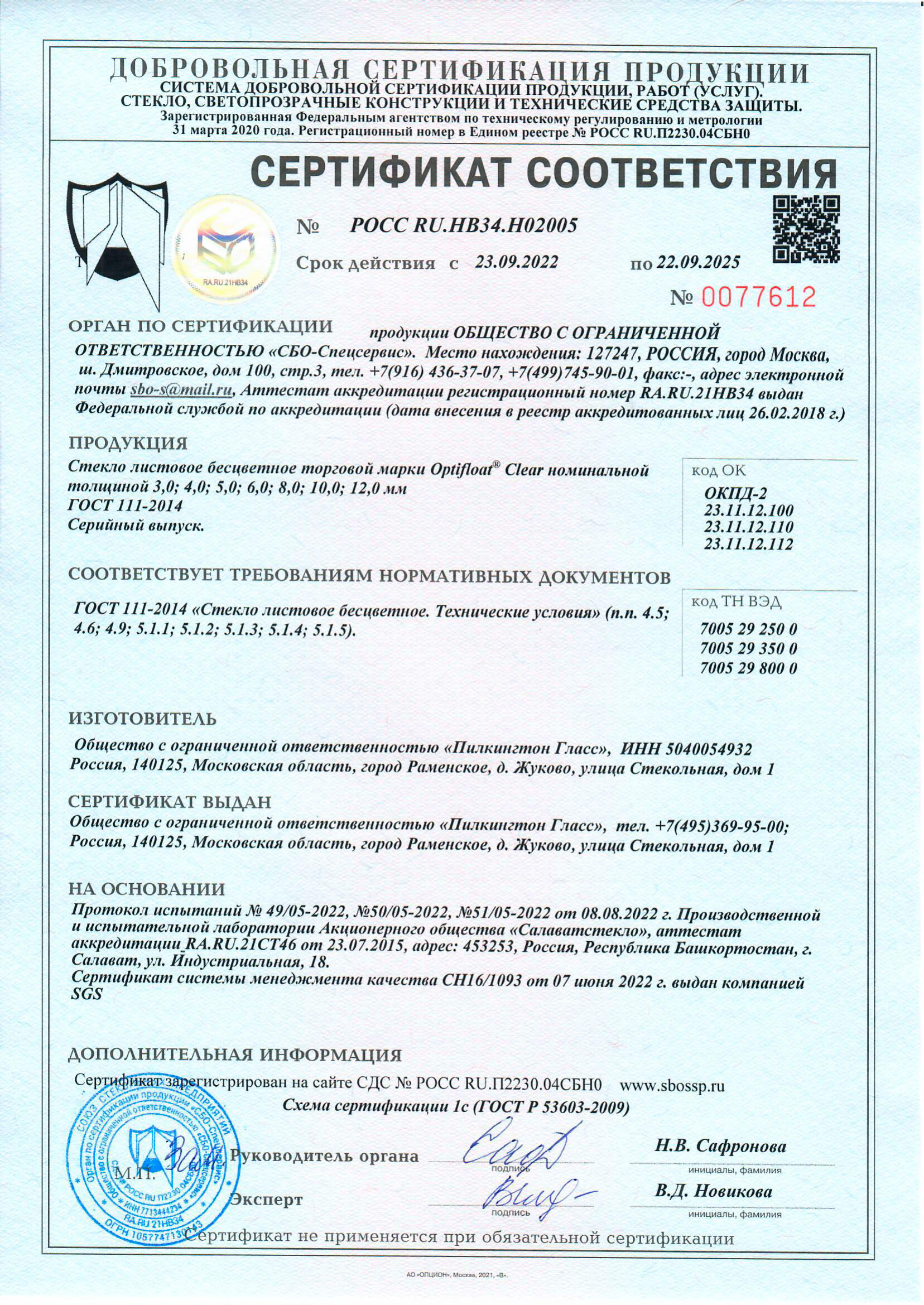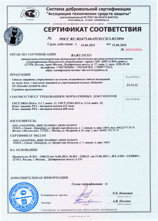 Сертификаты о соответствии стекла