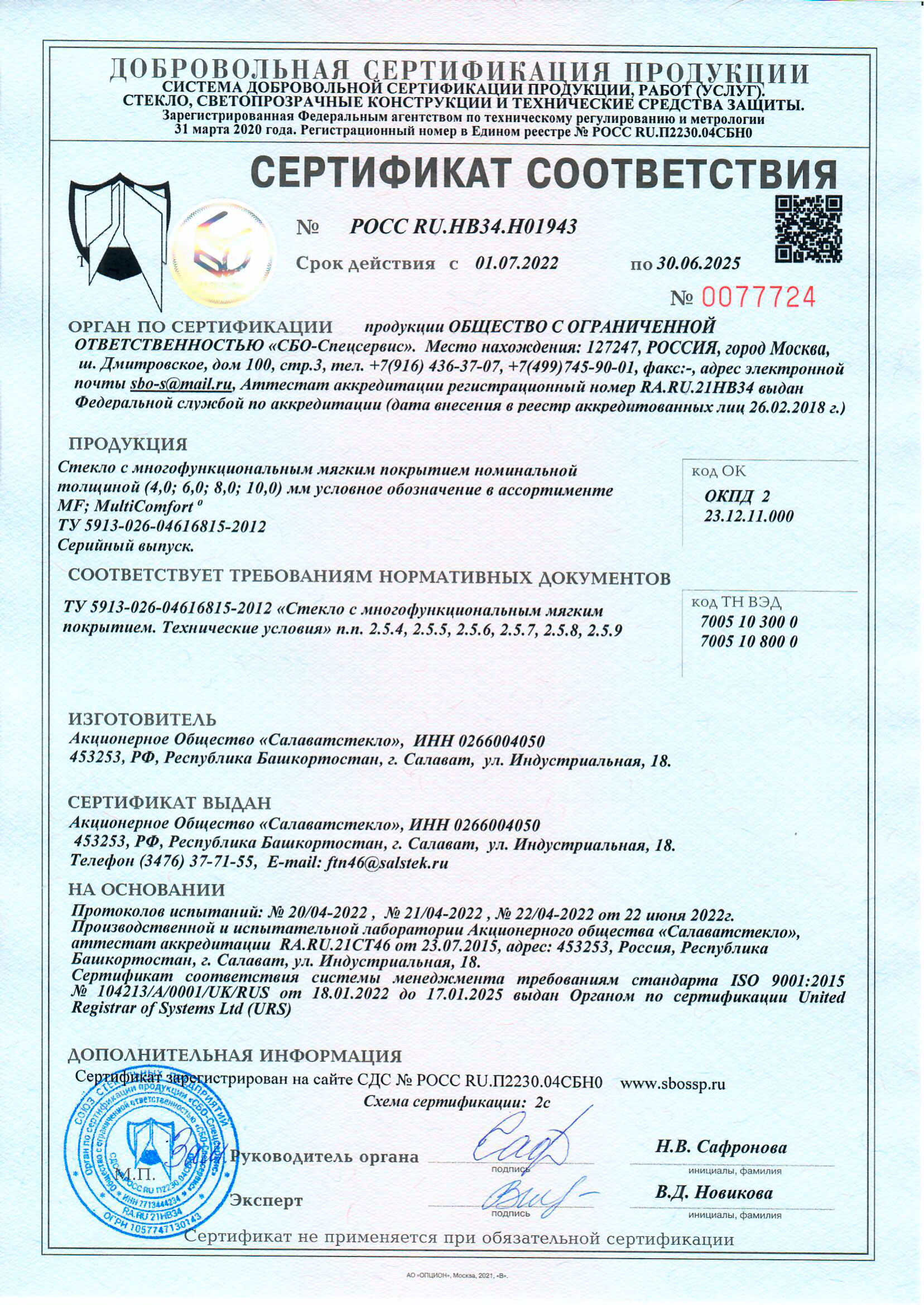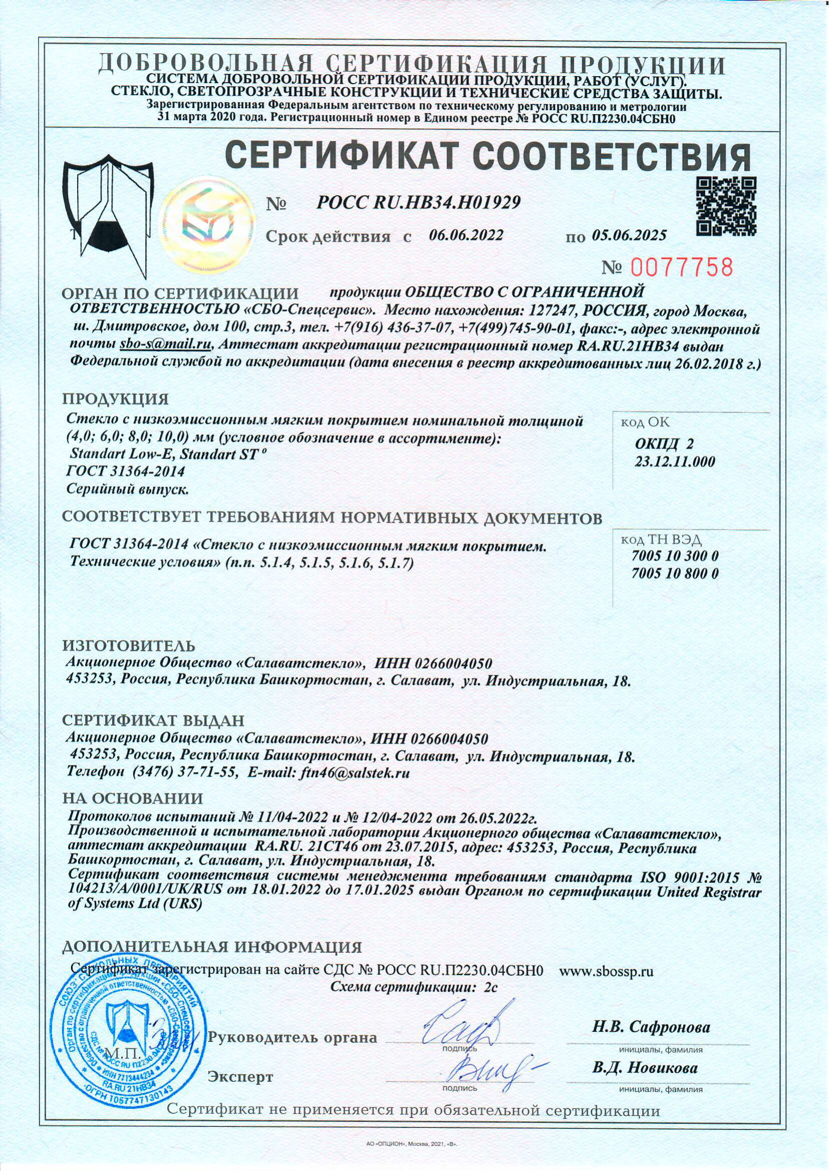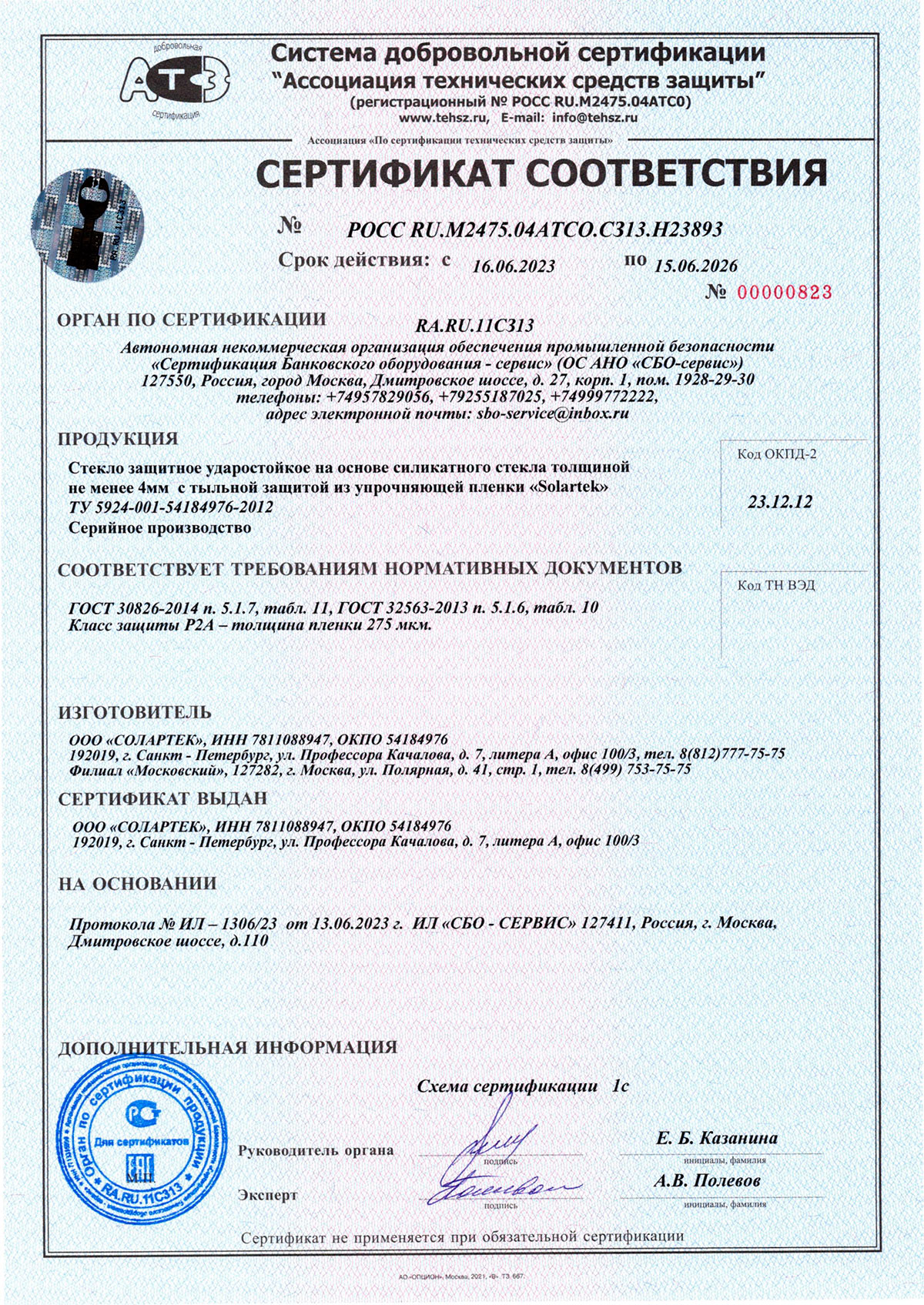 Сертификаты о соответствии стекла