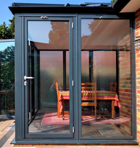 Террасная дверь легко интегрируется с фасадной системой Inicial IF50. Позволяет изготавливать теплые алюминиевые двери